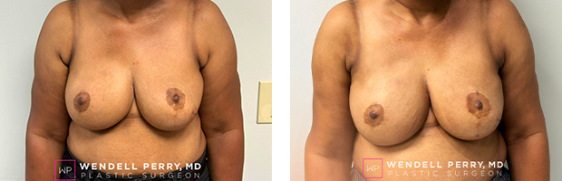 This is a breast cancer patient who had a revision of a previous breast reconstruction. The patient had a revision of scar tissue. The patient had a lift on the left side. And the patient had a fat transfer to the bilateral breast. The goal was to improve the symmetry between the two breasts and create a natural appearing result.